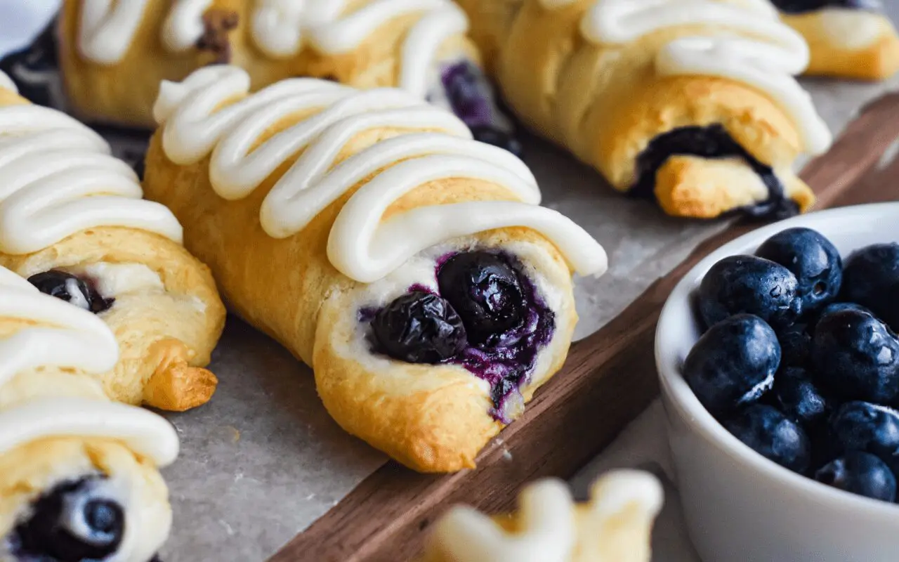 - Gently roll the crescent, being careful to keep the blueberries from falling out.
