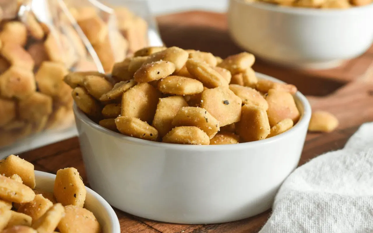 - Add the oyster crackers and stir until the crackers are evenly coated.
