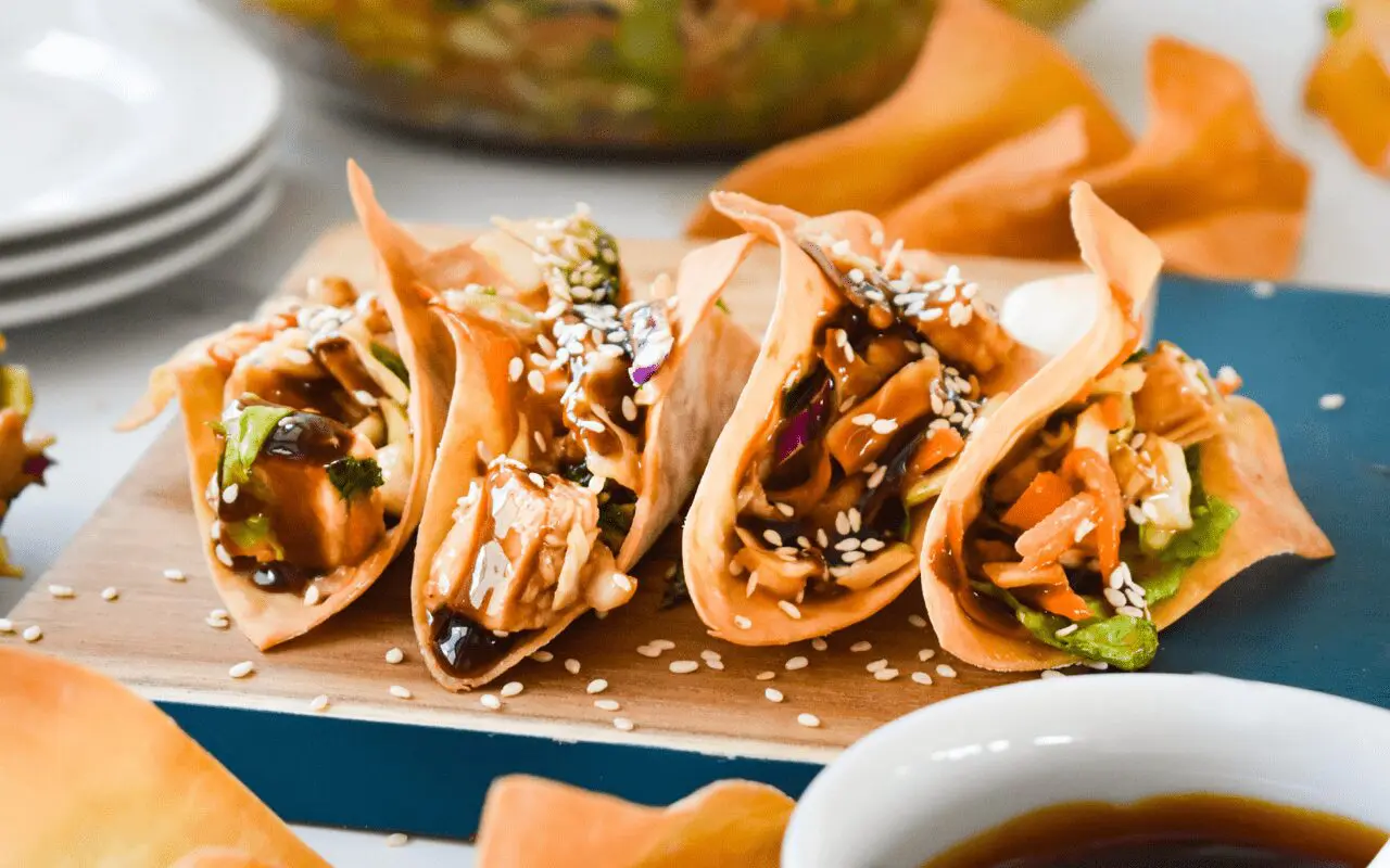 It’s food fusion time! These wonton chicken tacos are perfect for an Asian food craving that takes less time than it would for delivery to come to your door.