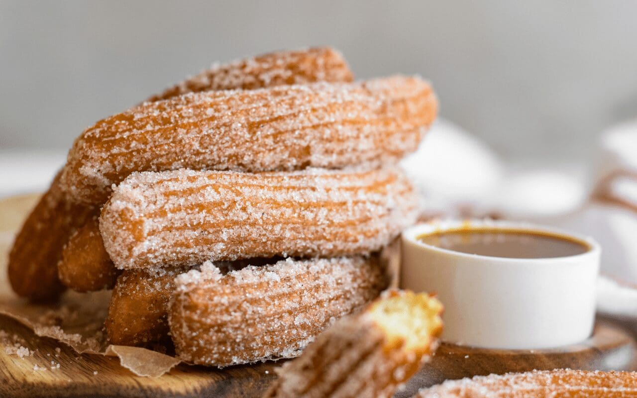 These Churros are a cinnamon sugar-coated fried snack that is crunchy on the outside and has a chewy interior. Try them dunked in chocolate sauce or caramel! For more delicious desserts, try these Peanut Brittle Grahams.